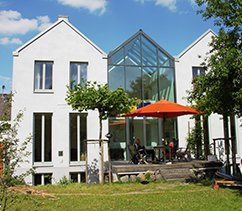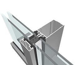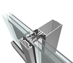 Hochgedämmtes Fassadensystem mit gleichen Profilen für Pfosten und Riegel.