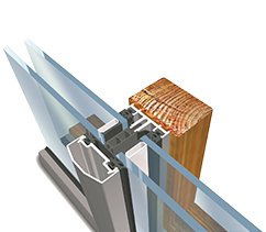 AT 500 F / AT 500 F-SI als Aufsatz auf Holz- oder Stahlunterkonstruktion. Hochwärmegedämmtes Fassadensystem mit gleichem Grundprofil für Pfosten und Riegel.